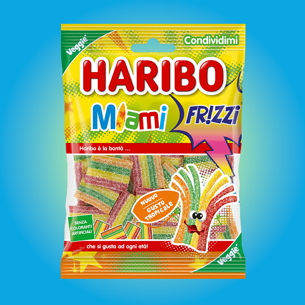 Escape to a world of tropical excitement with Haribo Miami Fizzy, where each piece is a ticket to paradise. These 175g packs bring you fizzy, fruity gummies that combine the perfect balance of sweet, sour, and sparkling sensations – creating a mini vacation in every bite.